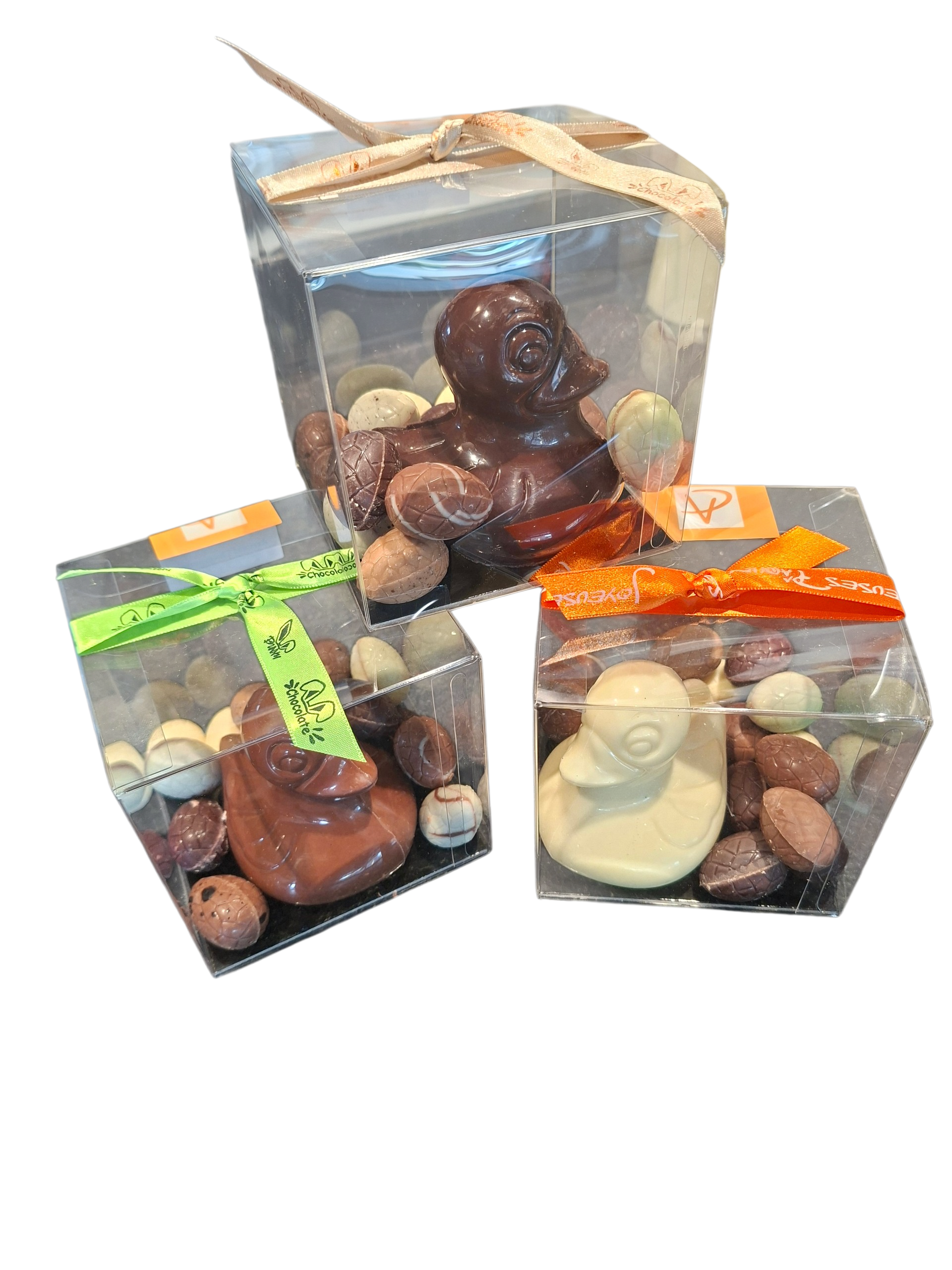Boîte contenant un personnage creux ‘Canard’ et 15 petits oeufs