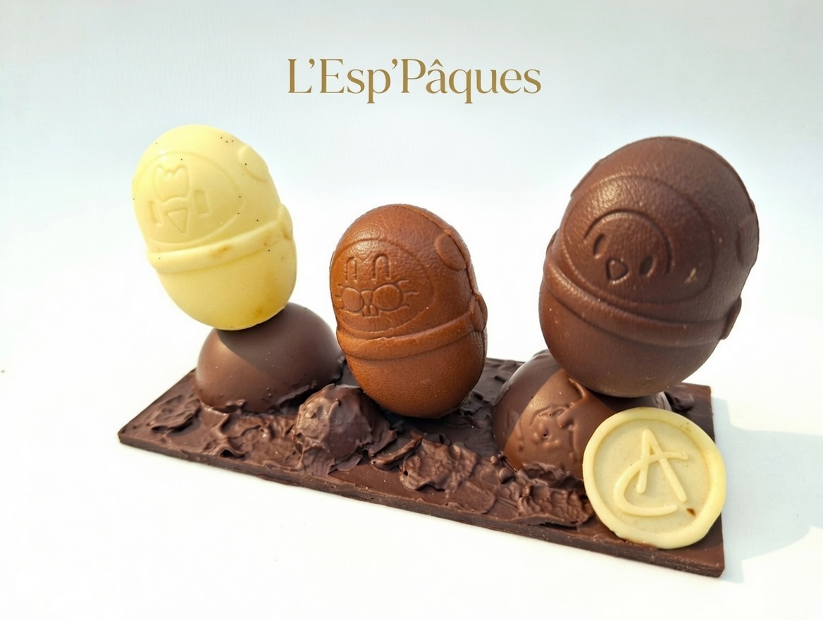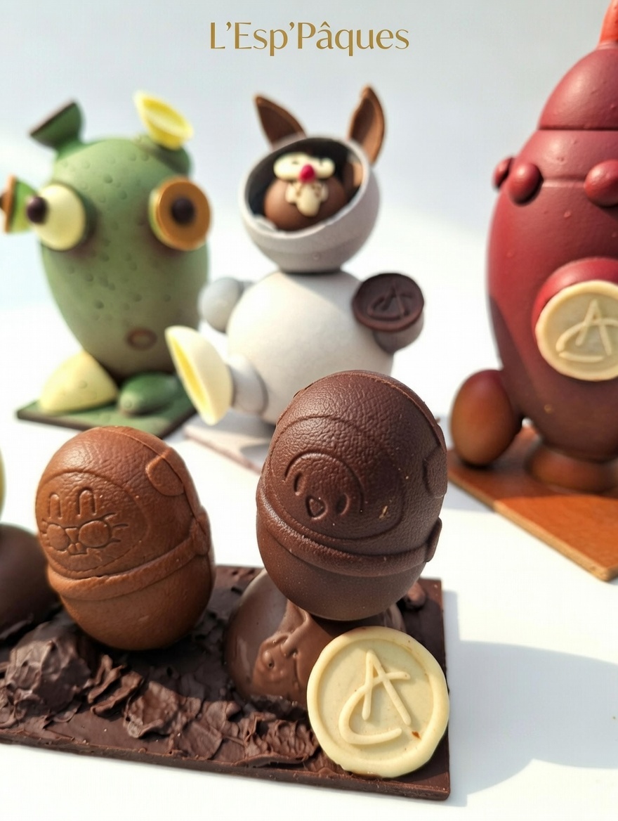 Montage tout en chocolat (blanc, lait et noir) et dans chaque Spationaute, 2 petits oeufs s’y cache !